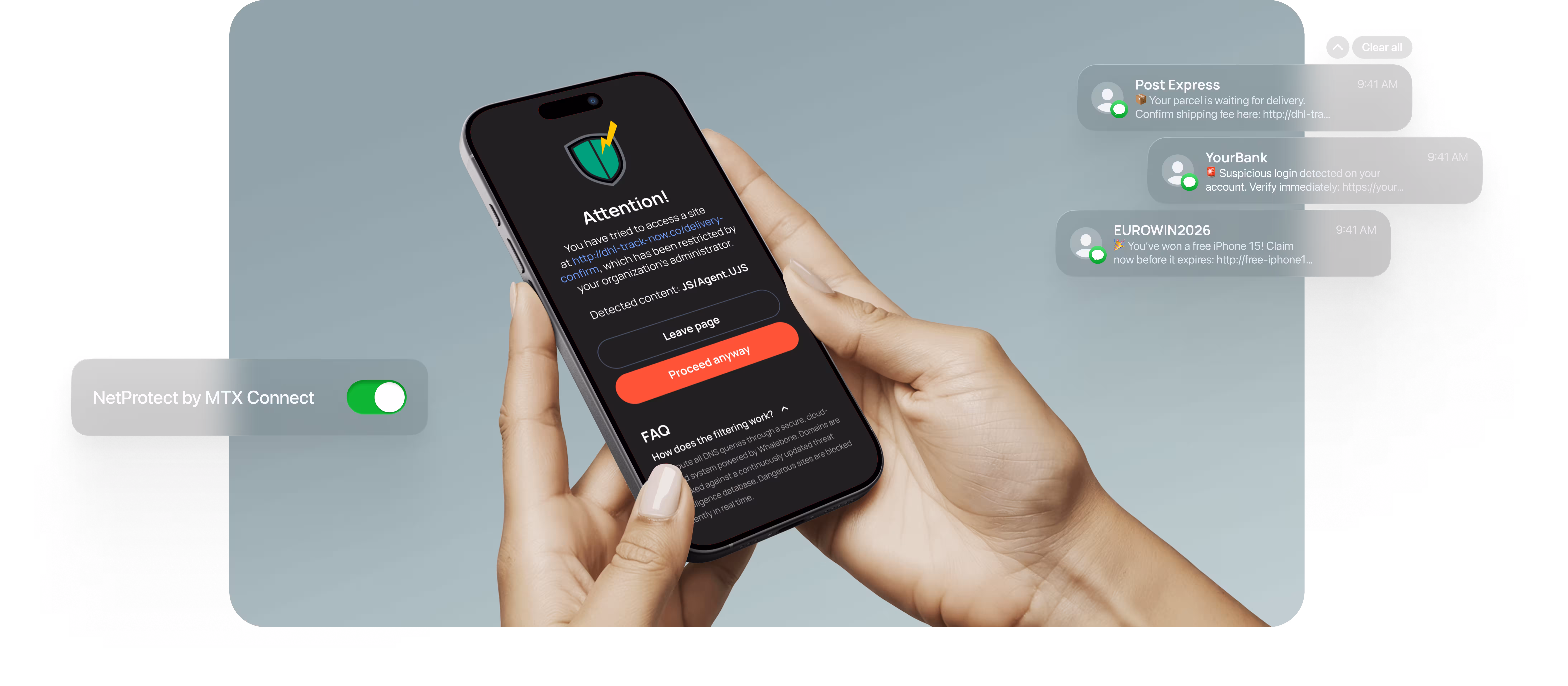 NetProtect constantly scans the internet for newly identified malicious websites and adds them to a dynamic blocklist. If you try to access one of these sites, you’ll receive a warning — and the page will be blocked automatically for your safety.